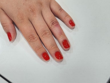 레드컬러로 손톱의 비는부분 없이